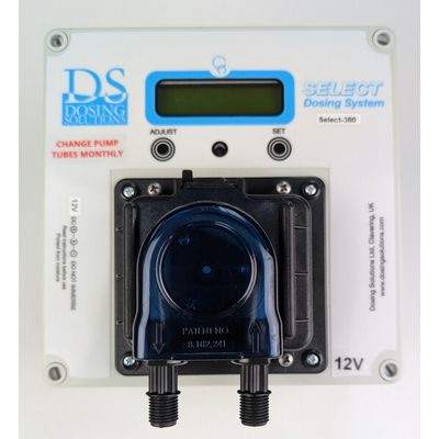 The Select-380 Doser by Dosing Solutions Ltd is a versatile, high-pressure dosing system primarily used in water treatment applications. Capable of dosing into line pressures up to 5 bar (70 psi), it serves as an efficient solution for proportional dosing, taking pulses from standard water meters or Dosing Solutions flow sensors. The doser offers a range of easily selectable dosing options and ratios, visible on the device's screen. Notably, it avoids common issues like air locks, thanks to its ability to handle both air and liquid, thus preventing downtime. The Select-380 can be powered by a 12V leisure battery, useful in field situations. It's adaptable to various water meters, and its precision is enhanced by using turbine flow sensors. It utilizes peristaltic pumps, which keep corrosive liquids contained, avoiding contamination. The doser is designed for minimal maintenance, with easy tube replacement. Furthermore, it supports diverse dosing ratios and eliminates the need for stock solution preparation, enhancing its efficiency and user-friendliness.