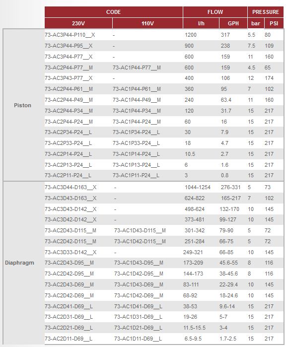 - Piston: P.E.U.A.P.M. / Ceramic / SS 316