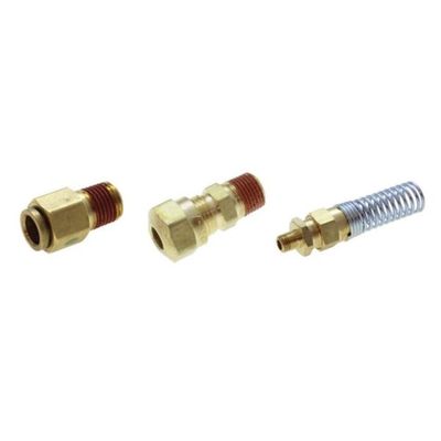 Rubber Hose Fittings are specifically designed for use with DOT air brake rubber hose. Connections with rubber hose fittings are made in a fashion similar to compression fittings, but without the sacrificial ferrule.