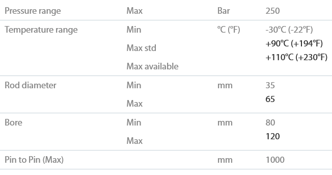 - Induction hardened and chrome-plated surface 96 h ASTM B117 or chrome-plated surface CASS 64 (on request)