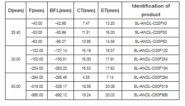 Dimensional tolerance:±0.1. Focal length tolerance:±1%. Central Thickness tolerance:±0.1. Surface Flatness:λ/4. Surface Quality:II~III.