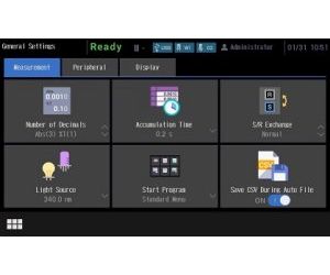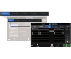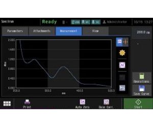 The UV-1900 on-screen user interface includes large, easy-to-see icons deployed on a black background, providing a clear picture of the instrument settings on the display. In addition, the large, easy-to-see icons improve intuitive understanding, which enables users to quickly become familiar with the operations. The user interface is designed to minimize transitions between windows, so users do not get confused during the operations.
