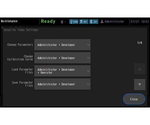 An external control security function has been added to provide more support for compliance with regulations. Three user authority levels, "Administrator", "Developer", and "Operator", can be set for instrument users.