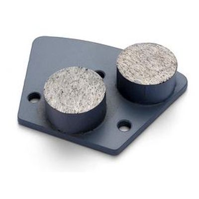 Metal bond double button trapezoid diamond grinding plate for concrete floor surface preparation. Z-LION double button trapezoid diamond grinding plate is a typical shape of concrete grinding tools which matches with most floor grinders in the market. Trapezoid grinding plates are widely used for concrete floor surface preparation such as lippage removal, thin coating removal, rough grinding etc. Bolt to machine via the 3 holes on the plate, different hole size for different floor grinder.
