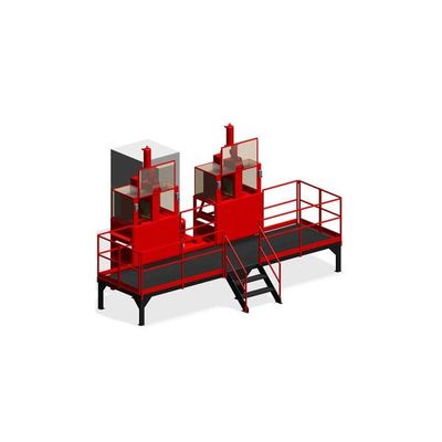 The double guillotines are simply a mirror image of the half platform system, we have uprated the dust collection system to deal with two heads and two waste can covers. The gates on the platform can open either from the ends or from the front, to suit your needs.