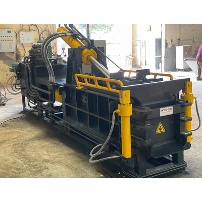 Hysan Double Compression Baler is a heavy-duty hydraulic baling machine designed for efficiently compacting recyclable materials light metal scraps. It features two-stage compression (pre-compression + main compression) to produce dense, uniform bales, optimizing storage and transportation costs.