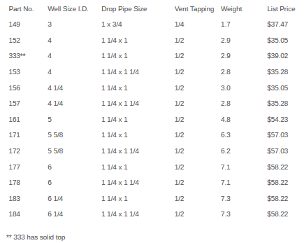 Class 25 Non-toxic lead free painted cast iron.Zinc plated steel bolts.Double Hole. 3/4″ molded rubber, 50 durometer.