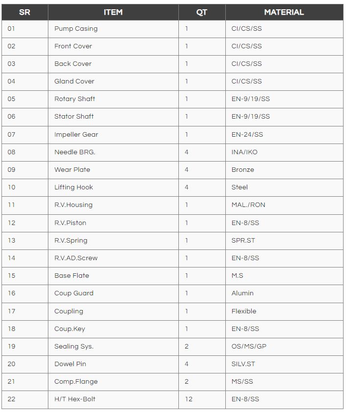 This Model should be selected for liquid which tends to solidify at room temperature such as Bitumen, Furnace oil, Asphalt, Tar, Starch, Molasses, Naphtha, RFO, Silicate, Wax, Soap solution. Because This model have jacketing construction facilitate the heating the pump by steam or thermic fluid.