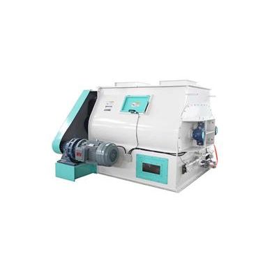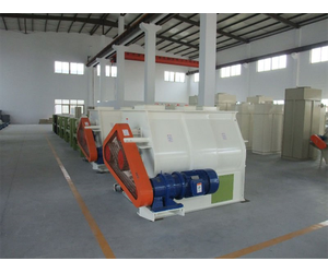 Feed paddle mixer is a horizontal mixing device widely used for mixing grain powder in feed pellets production line. Short mixing period, 30-120s is enough for every batch of material. High homogeneous degree, CV ≤5%. Please contact info@feed-pellet-mill.com for more details.Feed paddle mixer is a horizontal mixing device widely used for mixing grain powder in feed pellets production line . Its design is based on a U – type tank with dual shafts and paddles extending the length of the tank. The action of the pitched paddles moves material from the bottom and forces the material back down between the shafts, which will give a complete and homogeneous mixture of materials. Ideal mixing machine for homogeneous mixing of different ingredients in a shortest time (CV< 5%) irrespective of density, shape and size . Mixing time is 30-120s.