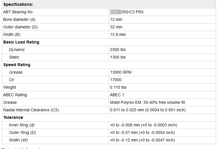 ABT - Model 5201 2RS/C3 PRX -Double Row Light Duty Metric Angular Contact Ball Bearing