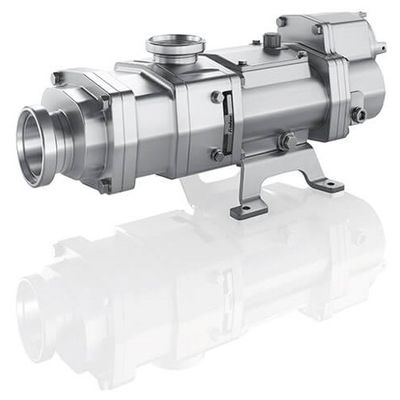 Our twin screw pump offers a wide speed envelope and consequently a wide range of flow rates. Now for the first time this feature is available in its entirety with the TSG option. This special series is capable of pumping both, small amounts of the most viscous products such as candy paste, as well as high flows of CIP liquids. Its unique gearbox unlocks the FDS series’ full potential and makes the TSG ideal for production facilities with a wide range of flow rates.
