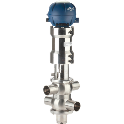 The B925 is a double seat valve (mixproof) with an extremely modern and compact design. The valve directs and controls the flow of two different liquids simultaneously, guaranteeing total separation between the two to avoid any risk of contamination. Extremely effective in production plants for health-hygiene applications, this valve allows a reduction of single seat valves required and consequently optimizes the use of available installation space.