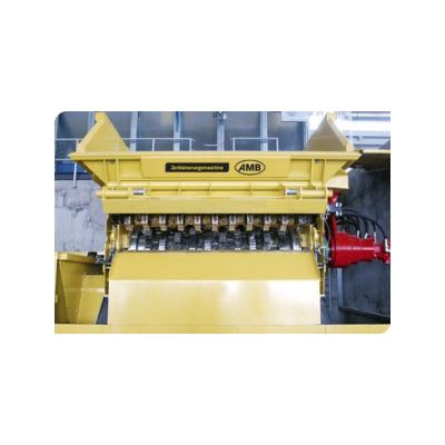 The speciality of all AMB two shaft shredders is the reversing process of the individually driven shafts, which is controlled by a PLC. During an idle run or when the load limit is reached, one or even both shafts switch their rotational direction and continue working in opposition.