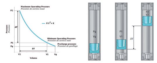 For each application, calculation of a piston accumulator varies. It is not possible to precisely calculate the dimensions of a