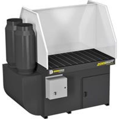 This dual operator, self-contained DD 4x4 is designed to accommodate workers both on the front side and back side of the table, with the capability of sectioning off each work area. The downdraft tables provide an industry leading (FPM) capture velocity allowing users to remove dust and fume further away from the table surface. The 4’ X 4’ Downdraft Table comes standard with two nanofiber cartridges with an efficiency rating of 99.8% @ 0.5 micron. The available extended overhang (EO) option extends the table lip by 6” and permits operators to sit comfortably at the table with enough kick space for their knees.