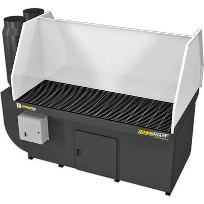 This dual operator, DD 4x6 downdraft table provides hands free capture-at-source, allowing welders and grinders to remove dust and fumes anywhere over the ventilated work surface. Depending upon application, the table can be outfitted with the welding grinding and deburring kit, the plasma cutting kit, the spray painting kit or many other built-to-order configurations. The 4’ X 6’ Downdraft table features a standard 3 phase 7.5HP motor which can be upgraded to 10HP providing adequate suction for a backdraft hood module or a dampered extraction arm installed on the downdraft table. Extraction arms and backdraft hoods allow operators to remove dust and fumes further away from the table surface when working on large parts.