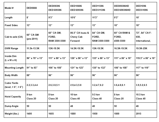 10 gauge construction throughout. Dirt shedding , sloped design at side plate and tailgate top. Double panel side plates equal over 1/4" thickness. Full depth 3/16"rear corner pillars incorporate recessed lighting, keyhole banjo eyes and lower tailgate pin receiver. All lighting is LED rubber mounted and NTEA and Federal compliant. 2 1/2" shorter deck height (9′ only). Mounting height of 9.5" chassis to floor (9′ only). 10" board extension pockets ease of install & future optional / custom overhang. Self aligning rear latch release for the top gate pins. Integrated tarp hooks. Our products come acid etched, phosphate washed, with corrosion resistant epoxy primer and then baked for a strong superior finish.