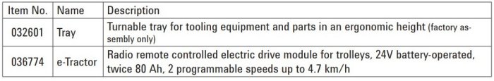 - Guide wheels with park brakes and steering arresters