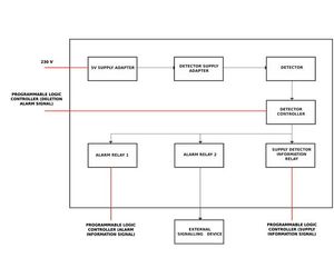 When the device is ON, the detector continuously monitors environment for radiation and alerts the user with an audio or visual alarm if a radiation source is detected. The system is supplied with 230 VAC. The detector is equipped with safety alarm threshold to alert the user when immediately dangerous for life radiation level is reached. When this threshold is exceeded, the instrument will produce easily distinguishable periodic audio and/or visual alarm with one second interval.