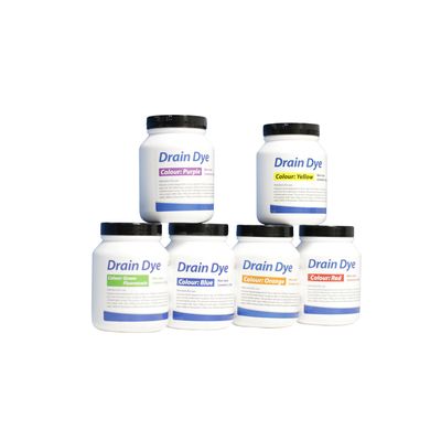 Available in six different colours, the Drain Dye allows the flow of different drainage systems in the same network to be identified with drain dyes of different colours. Use a red Drain Dye in one entrance and a blue Drain Dye in a second for example, and identify which entrance is flowing to which downstream outlet.