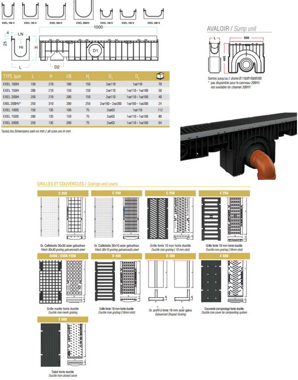 The Technodrain Exel system is composed of: Channel body in PE-HD with a stainless/galvanized steel frame, 4 mm depth. Height of frame, 25 mm. Can be used up to class F900. Ideal for road drainage, crossings, parking and unloading areas for heavy vehicles, where the system has to support high loadsì linked with high crossing speeds.