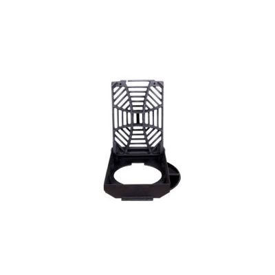 Rectangular gully grating, dimension 601 x 406 mm, produced and tested according to EN 124, class C 250/D 400.  Grating and frame: console type, made of ductile iron; clatter-free with elastomer insert and spring locking-system integrated in the grating.