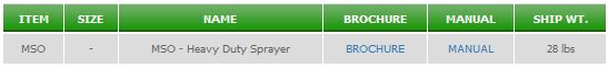Fully adjustable pressure- up to 500PSI Adjustable spray pattern & output rates 33` Discharge hose Optional cart Solid bronze pump construction with oiless bearings Durable metal housing 120V AC. The Dramm Heavy-Duty sprayer is powerful and compact- designed for every type of chemical application. Model MSO is a hydraulic sprayer with fully adjustable pressures, making it a highly flexible tool for the application of pesticides, fungicides, wetting agents, cleaning solutions and disinfectants. By simply twisting the spray gun knob you can adjust the pressure from a stream that throws up to 20 feet to an eight foot diameter mist.