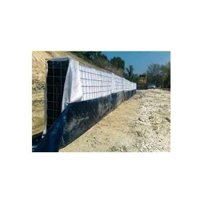 Galvanised steel metal modules with non-woven fabric lining, draining core consisted of small expanded polystyrene blocks.