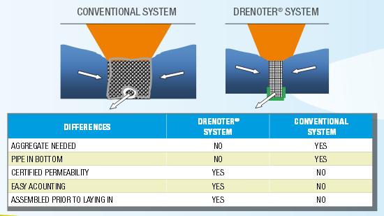 Operating Principle: DRENOTER drainage modules are used as an alternative to aggregate for the construction of modern drainage systems that are safe to install and provide excellent mechanical and hydraulic performance, certified by strict laboratory tests.