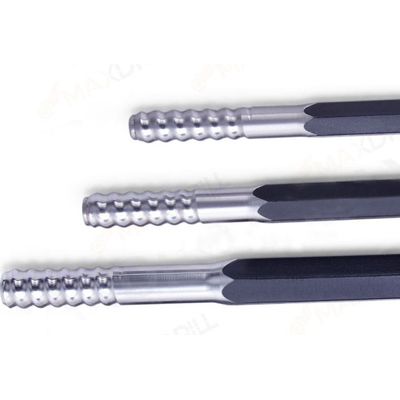 Maxdrill’s top hammer drill rods, such as, lightweight drill rods and extension rods, are manufactured from high-strength materials. Along with the special design for heavy duty, drill rods features safety of use, high drilling performance and long service life.  Maxtrill’s drill tools are designed to break rocks and drill holes in an efficient way that it transmits energy generated by the drill rig into rocks with less energy loss. To increase drilling productivity, Maxdrill has developed a new series of MF drill rods for open use based on user feedback, advanced technology and mature techniques. The MF drill rods do better in transmitting percussive force and enhancing rate of penetration as they are stronger, more resilient and more efficient in reducing energy loss.