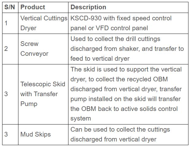 - For WBM cuttings, we don’t recommend to use vertical cuttings dryer;