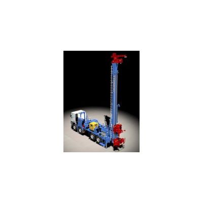 Drilling rig for water wells, mineral explorations, seismic, coring and deep geothermal applications. Although its moderate dimensions it has high technical characteristics in terms of pull up and torque: for this reason the rig able to reach high depths (around 800 m). It is possible to work by mud pump 7”1/2x8” which vastly improves drilling also in bad terrain conditions. Its versatility permits to adopt various drilling methods: direct and reverse circulation by mud and by down the hole hammer. The rig can be either crawler or truck mounted and it can be operated remotely.