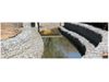 The stepped weir has no essential differences from the vertical type, but the water flowing over the weir dissipates a part of its energy at each step, therefore, requiring protection of the horizontal surface of each step. This structure should only be used for small weirs where the values of discharge for unit width are limited in any case it should be avoided where a heavy bed load is carried which could case damage to the mesh on the steps.
