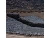 Gabion weirs or drop structures are classified in three types, according to the shape of their downstream face at the center of flow. The vertical drop structure or weir is the most basic type, and is most often used for small weirs in a channel system controlling only a reach of the stream. An essential component of the weir, is the upstream ramp, preferably formed from compacted clay, or other suitable material. The upstream ramp provides three advantages: protection of the upstream side of the gabion against damage, presentation of a smoother profile to the flow and added stability to the overall structure. In the design of vertical weirs, attention must be paid to the dissipation of kinetic energy of the cascade at the toe of the structure.