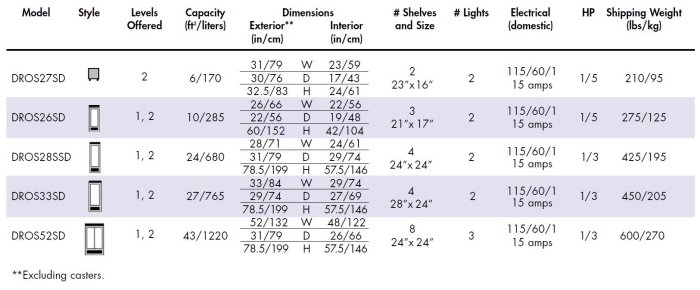 - Level 1 – temperature control, with a glass door for room light penetration, an interior door light with an on/off switch, and an RH meter to observe humidity levels. This level of control is not available on thermoelectric models or the undercounter model.