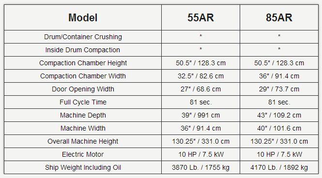 What if you need to do all of that and need to compact the waste into 85-gallon overpack drums? Then the 85AR is your choice.