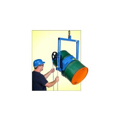 To load the drum lifter, simply move the drum holder against the drum and cinch the chain. Lift the drum and rotate drum 360 degrees in either direction. Drum can be held at any tilt angle. The standard drum tilt control is a chain wheel with 12` chain loop.