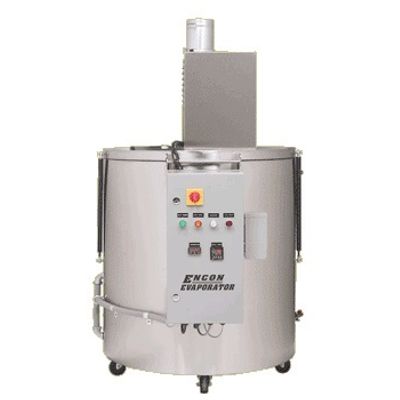 ENCON Drum Evaporators are electrically heated small volume evaporator available in two sizes. The DE-2 is a batch evaporator (auto-fill option is also available) that can process 200 gallons per 5 day week. The DE-4 is a auto-fill evaporator that can process 400 gallons per 5 day week.