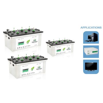 Dry Charged Batteries based on modern pattern Technology. Latest Deep Cycle Technology. Require Low Maintenance. Tubular Technology for Longer Battery Life. Resistance to Overcharge. Less Water Topping Required. Ceramic Water Level Indicator. Suitable for Areas of Frequent and Long Power Cuts. They do not need to be charged after installation, they can be directly put in service. Even if they discharge completely, when they re- charged, they return to normal. Very Long Life. Low Self Discharge and Abuse Resistant. Quick Recharge. Heavy Duty Terminals. There happens no "sulphatization" since the pores of the plates do not choked up. Less Pollution. World Class Separator. World’s Best Imported Lead Used.