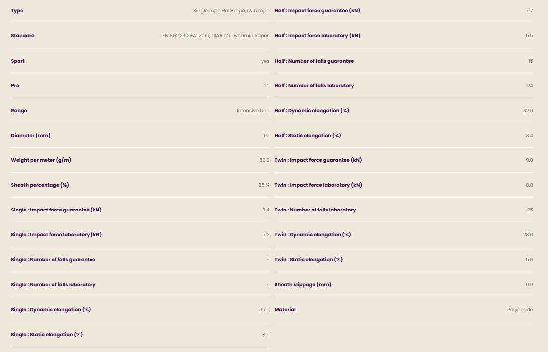 The rope which meets the requirements for all three standards for dynamic ropes