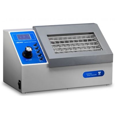 Using dry heat and nitrogen blow down, the RapidVap Vertex Evaporator speeds evaporation of up to 50 samples at the same time. A convenient touchpad allows easy programming of time and temperature. Up to ten different programs may be stored in the microprocessor for protocol consistency. Unlike water bath heaters, the dry block heater requires less maintenance, no distilled water or additives, and adds no potential source of contamination. The RapidVap Vertex Evaporator is ideal for preparation of samples in a variety of applications including drug discovery, clinical analysis, environmental testing, agrochemistry, and forensic evidence processing. Quality construction and reliable performance are backed by a one year warranty.