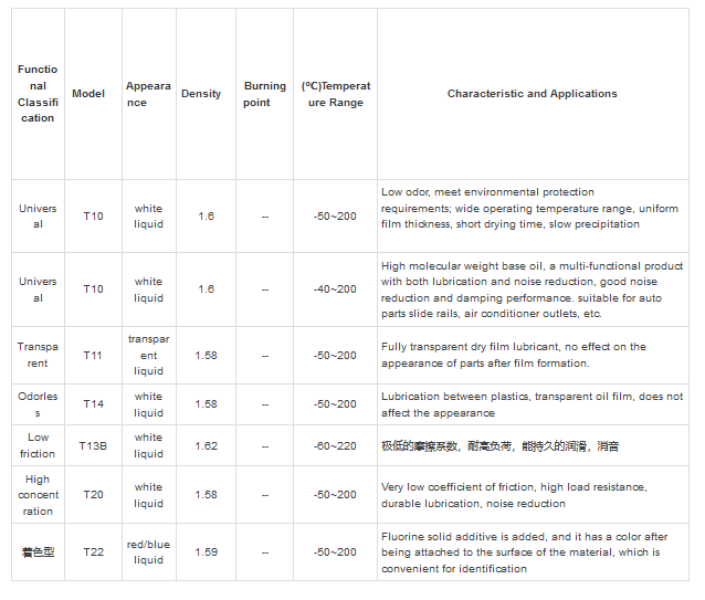 Dry film lubricant is a new type of lubricant prepared by uniformly dispersing ultra-low molecular weight polytetrafluoroethylene particles (PTFE) and perfluoropolyether oil (PFPE) in a fluorine solvent.After the fluorine solvent of this drying film oil evaporates.it will forms a uniform translucent lubricant film on the surface of the workpiece.The oil film is a mixture of polytetrafluoroethylene and perfluoropolyether, which has a very low friction coefficient, does not absorb dust, and has excellent lubricating performance and cleaning performance.The oil film prevents direct contact of the friction surfaces, thereby reducing friction.Its lubricity is more than 2 times that of most common lubricants, its operating temperature range is wide, and it has the characteristics of high cleanliness, low torque lubrication, noise reduction, anti-static, and oil-free