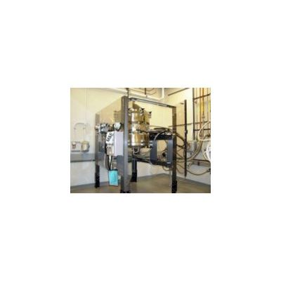 Vacuum conical dryer, 300 liter (10 cu. ft.) capacity, manufactured by Lee Industries, model 300LU, stainless steel construction, rated for 50 PSI @ 300 deg. F internally, jacketed for 100 PSI @ 338 deg. F. Pan measures 30" diameter X 26" straight side with cone bottom. New in 1998, serial number C5281G. Dryer is mounted in frame with clear plastic housing. Pan rotates 180 degrees as product is being dried and vacuum is pulled on filter cake. Previously used in clean room atmosphere and in excellent condition.