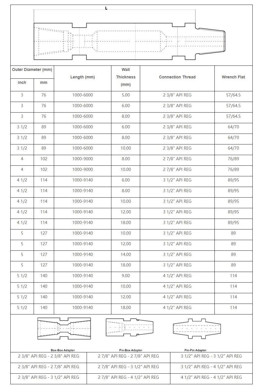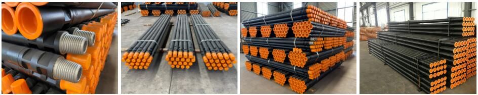 DTH drill rods (also called as drill tubes or drill pipes) are the mechanism to transmit impact force and rotation torque to DTH hammer and DTH bit, as well as offer pass for the air flow. Sunmoy supplies a full size of friction welded DTH drill rods from 76mm to 140mm with different wall thickness. In DTH drilling, the percussive DTH hammer is located behind the drill bit, inside the hammer, a piston powered by compressed air gives the drill bit its striking power, while the DTH hammer casing gives guidance to the drill bit; the drill string rotates while the drilling hammer continuously strikes down into the rock. The DTH drill rods transmit the necessary feed force and rotation to the DTH hammer and bit, as well as compressed air for the DTH hammer, more dth drill rods are added to the top of the drill string as the hole gets deeper. The fast hammer impact breaks hard rock into small particles, which are blown up by the air exhaust from the DTH hammer.
