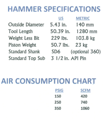 DTH Hammer for drilling 6" to 7 1/2" holes.