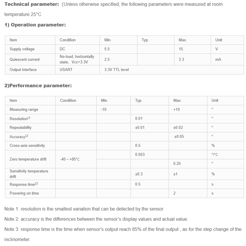 ZCT210M-NTR is a dual-axis inclinometer which is designed and manufactured by Shanghai Zhichuan Electronic Tech Co., Ltd. The maximum measuring range is ±10°, the accuracy is 0.05°, and it’s TTL output.
