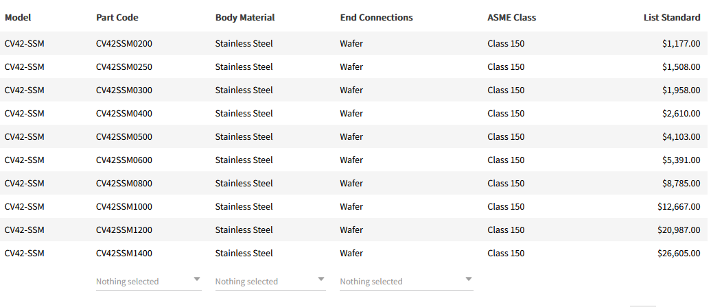 - Stainless Steel - ASTM A351 Gr. CF8M - Class 150