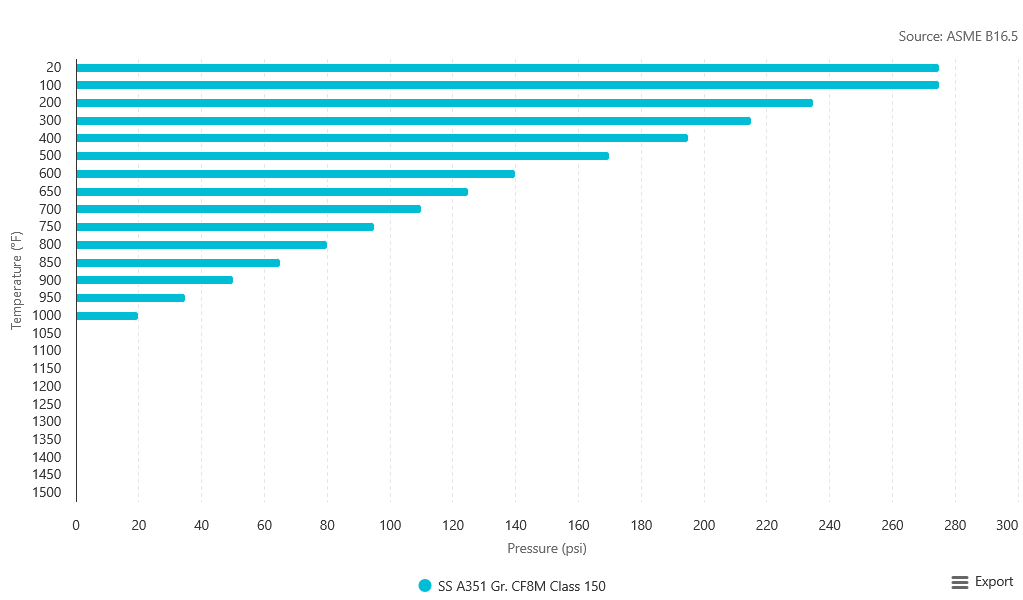 - ASME Rating: Class 150