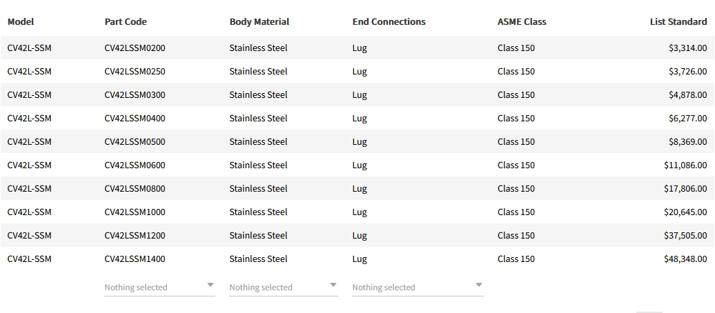 - Stainless Steel - ASTM A351 Gr. CF8M - Class 150