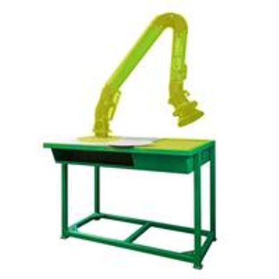 The Scorpion™ filter bench incorporates a fan and a compact compressed-air pulse cleaning filter system below the bench. Carbon filters are also available for TM fume capture. With extract grille and Nellie™ arm. Optional turntable available.
